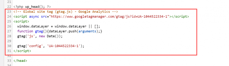 The other way to add a website to Google analytics is to embed the tracking code in the header section of the theme.